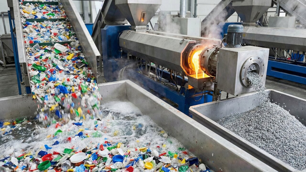 Com o material limpo e seco, inicia-se a fase industrial mais conhecida: a extrusão. Os flakes são aquecidos até o ponto de fusão, derretidos e homogeneizados em máquinas específicas. Durante esse processo, o plástico ainda passa por sistemas de filtragem para eliminar qualquer resíduo sólido remanescente.